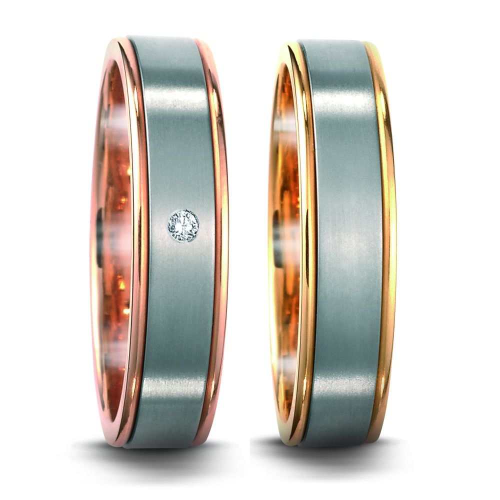 TitanFactory Trauringe aus Titan & Rot/ Gelbgold mit Brillant kaufen
