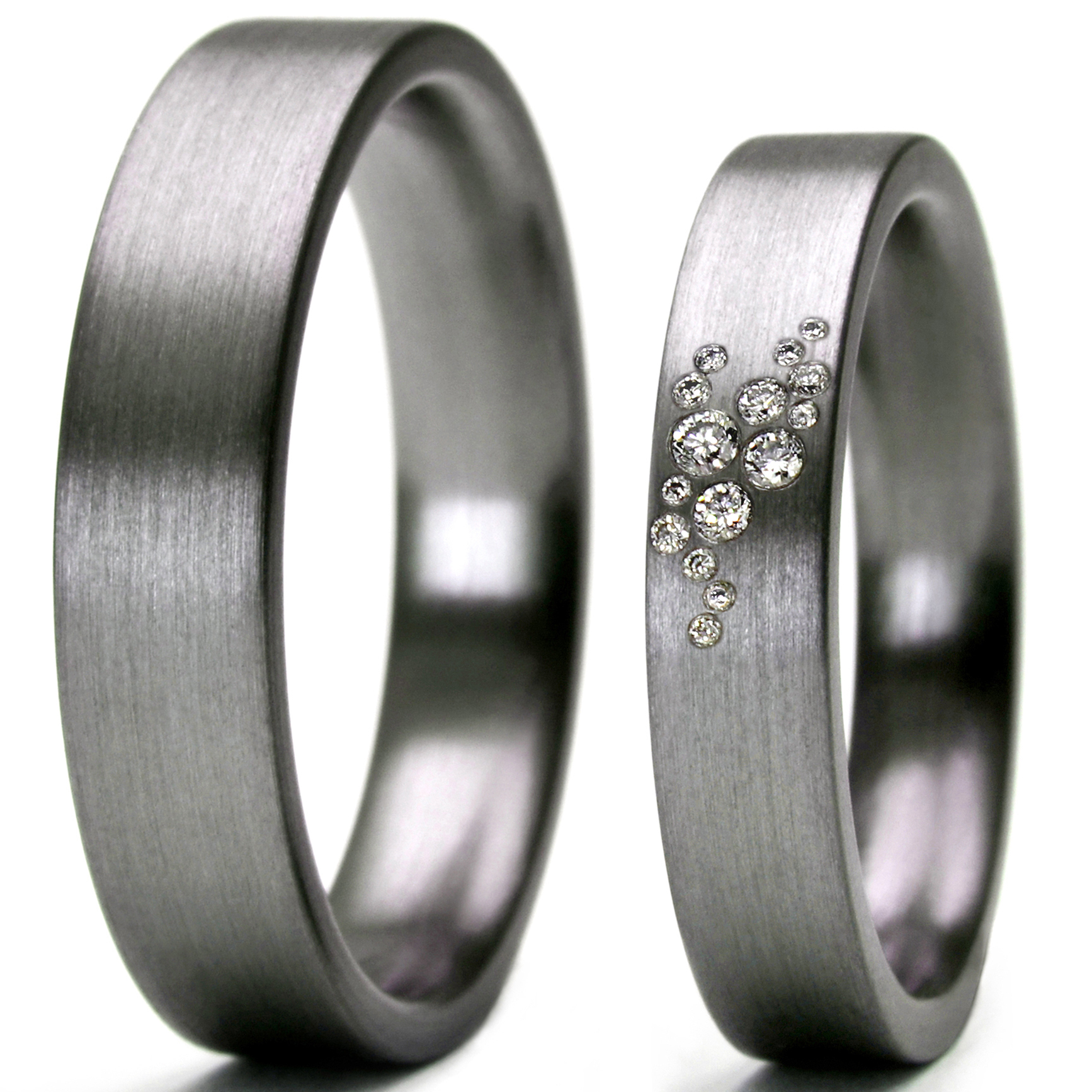 Jetzt Ihre besonderen, graphitgrauen Trauringe aus Tantal mit Brillant kaufen und kostbare, ultramoderne Traumringe zum Jawort ausführen!
