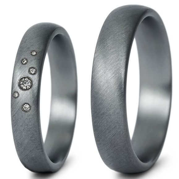 Unsere Tantal Eheringe mit Brillant 0,043ct kombinieren Eleganz und Einzigartigkeit. Entdecken Sie das schrägmatte Finish für Ihren großen Tag.