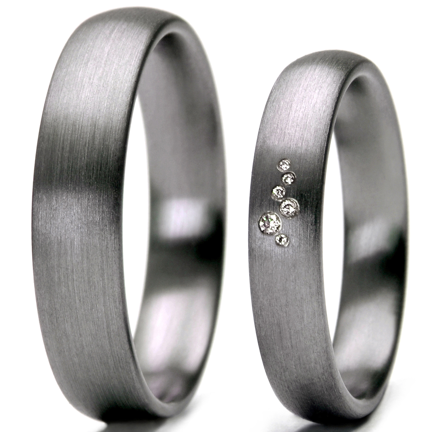 Jetzt Ihre besonderen, graphitgrauen Trauringe aus Tantal mit Brillant kaufen und kostbare, ultramoderne Traumringe zum Jawort ausführen!