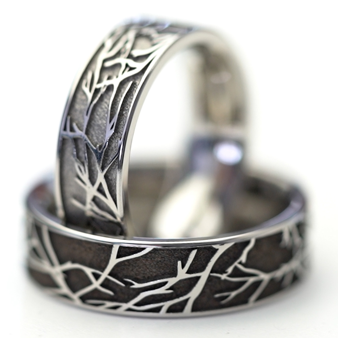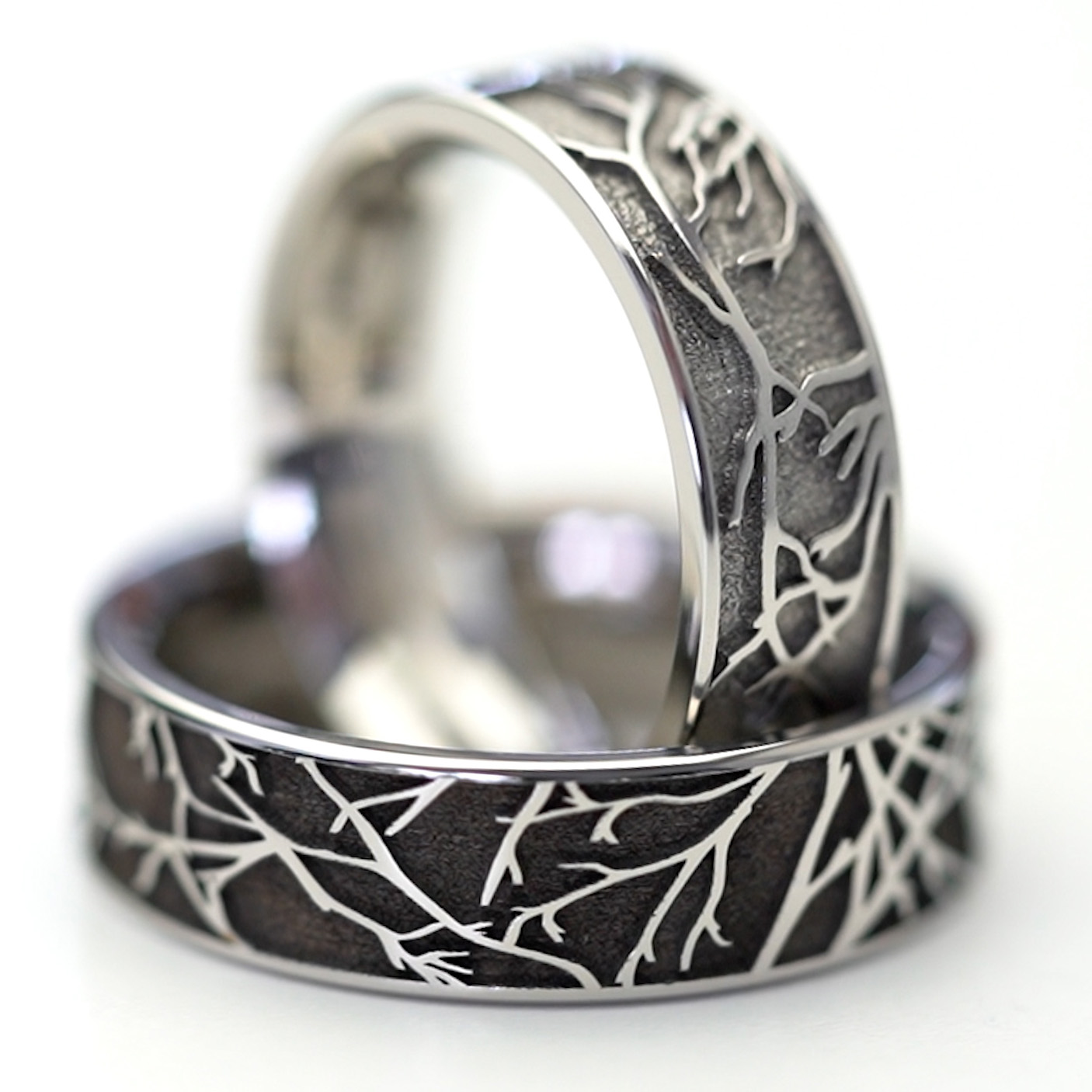 Oberfläche: poliert/strukturiert / die Außengravur ist beim Damenring gereinigt / beim Herrenring schwarz / kann individuell angepasst werden