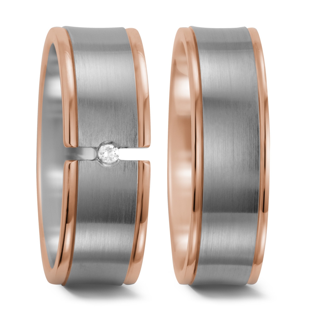 - elegante Trauringe Bicolor aus Rotgold & Weißgold mit Brillant - made in Germany!