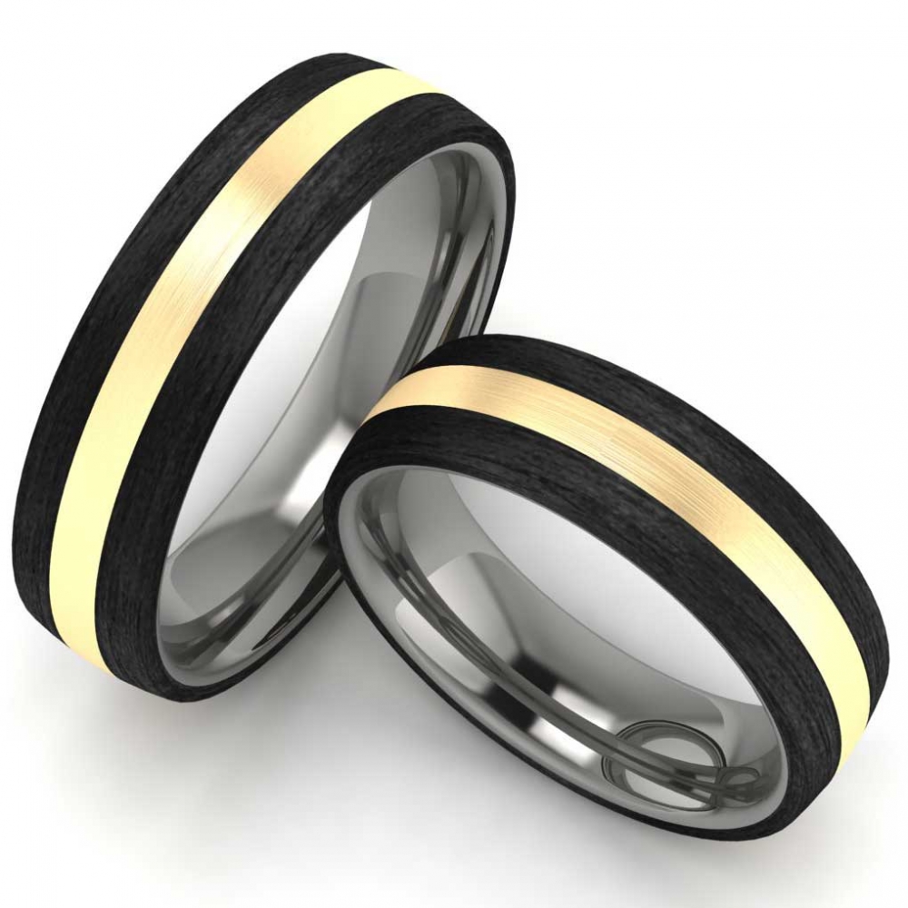 Trauringe Carbon Titan mit Gelbgold: Moderne streift Klassik
