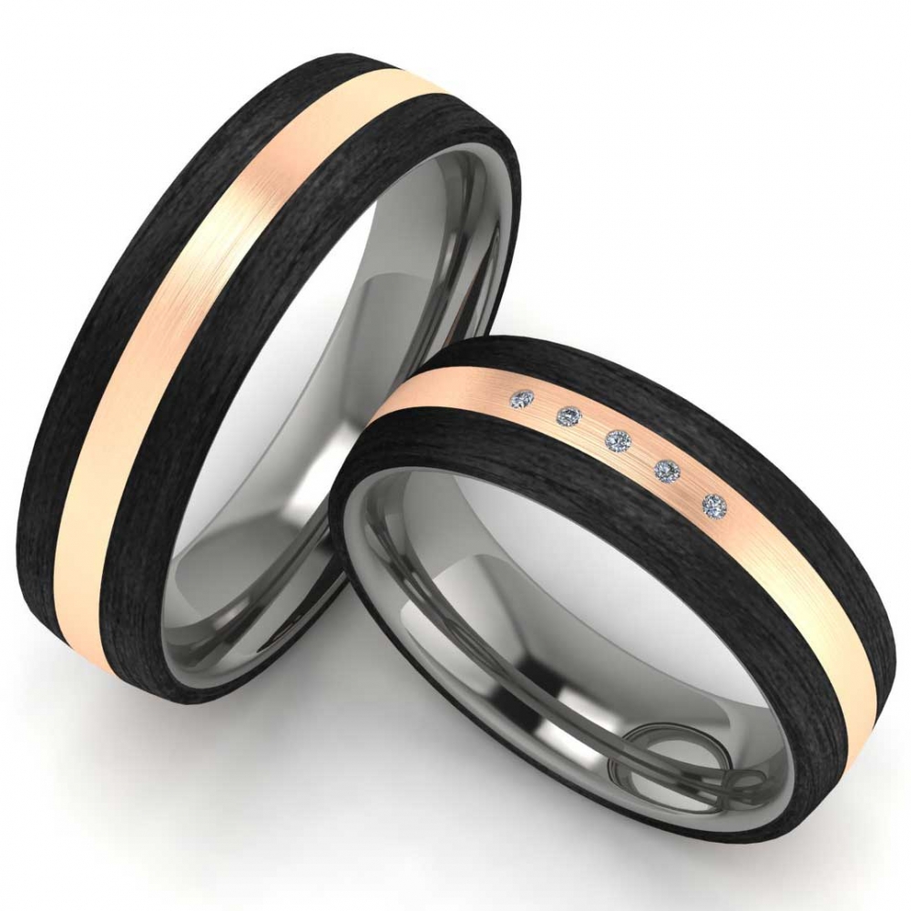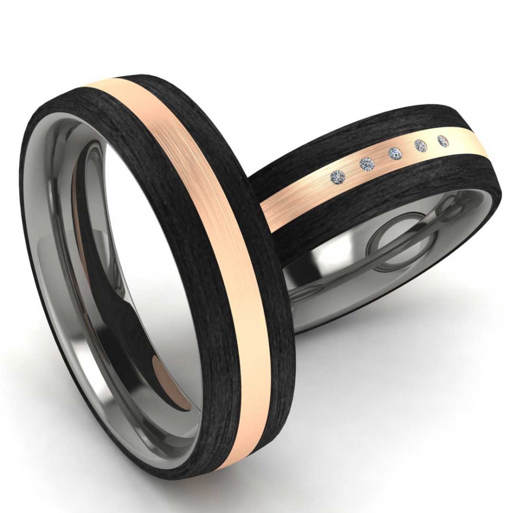Jetzt Ihre Tricolor Trauringe aus Carbon, Titan und Rotgold mit Brillant günstig kaufen und einander echte Trendringe mit unvergänglichem Charme überreichen!