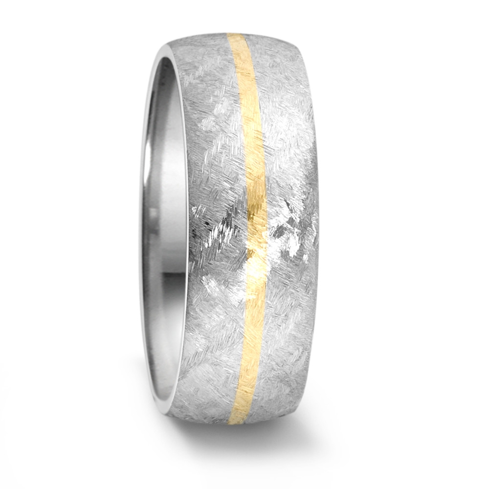 Unikat Trauringe aus Edelstahl mit Brillanten: Zeigen Sie mit diesen einzigartigen Trauringen, wie besonders Ihr Glück ist und freuen Sie sich über echte Design-Schätze zum Bestpreis! Mit der handgearbeiteten CRISSCROSS Oberfläche, ist jeder Edelstahltrauring ein wunderbares Unikat, einzigartig und unverwechselbar. Und auch die Materialien möchten mit Ihnen das Glück bis in die Ewigkeit erfahren, denn der verwendete Chirurgenstahl ist besonders fest, anlaufbeständig und somit herrlich alltagstauglich. Eine kostbare Gelbgold-Linie, die zu 75% aus feinem Gold besteht, macht diese Ringe noch kostbarer und erinnert symbolisch an das goldene Band der Ehe! Angefertigt werden die einzigartigen Edelstahlringe in der Pforzheimer Manufaktur TeNo, welche sich jedem Ring mit einem ganzen Team aus Schmuckfachkräften widmet, um Ihnen die ganze erstklassige Qualität für die Hochzeit zu schenken.