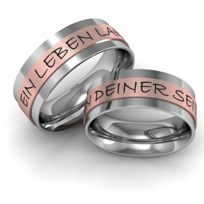 Trauringe Edelstahl und Rotgold mit Gravur im Detail: