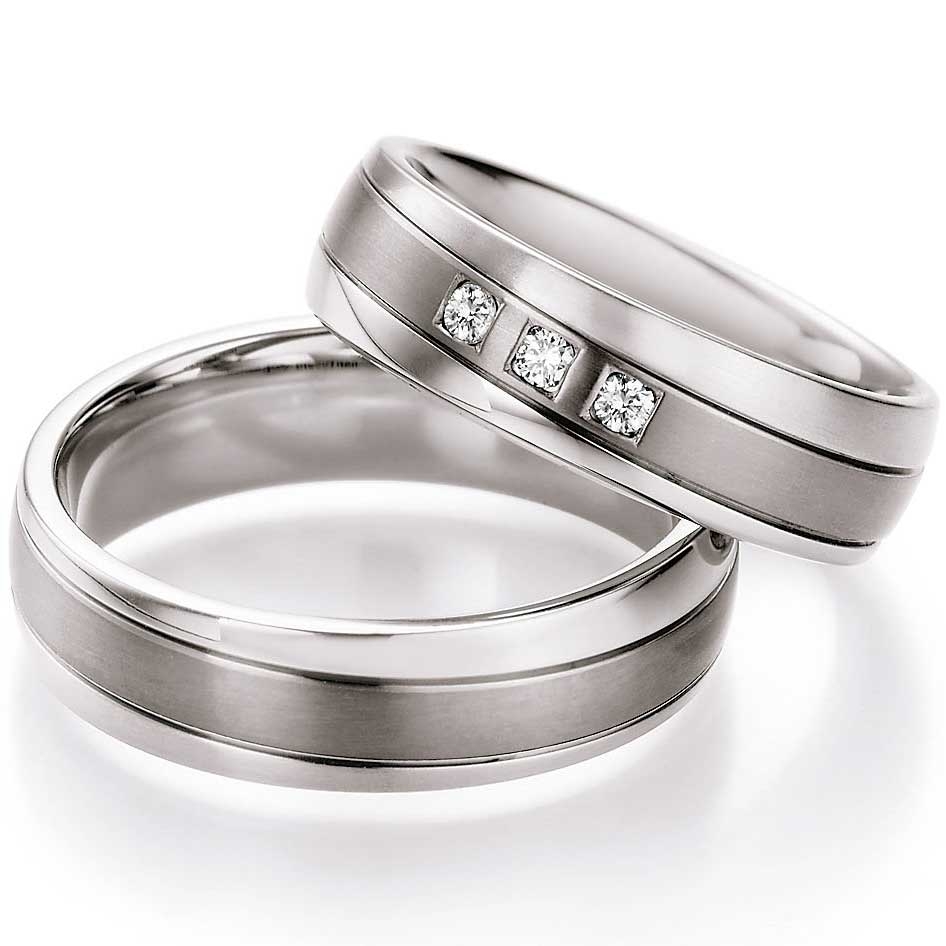 Einzigartige Partnerringe Titan mit Edelstahl mit Brillanten