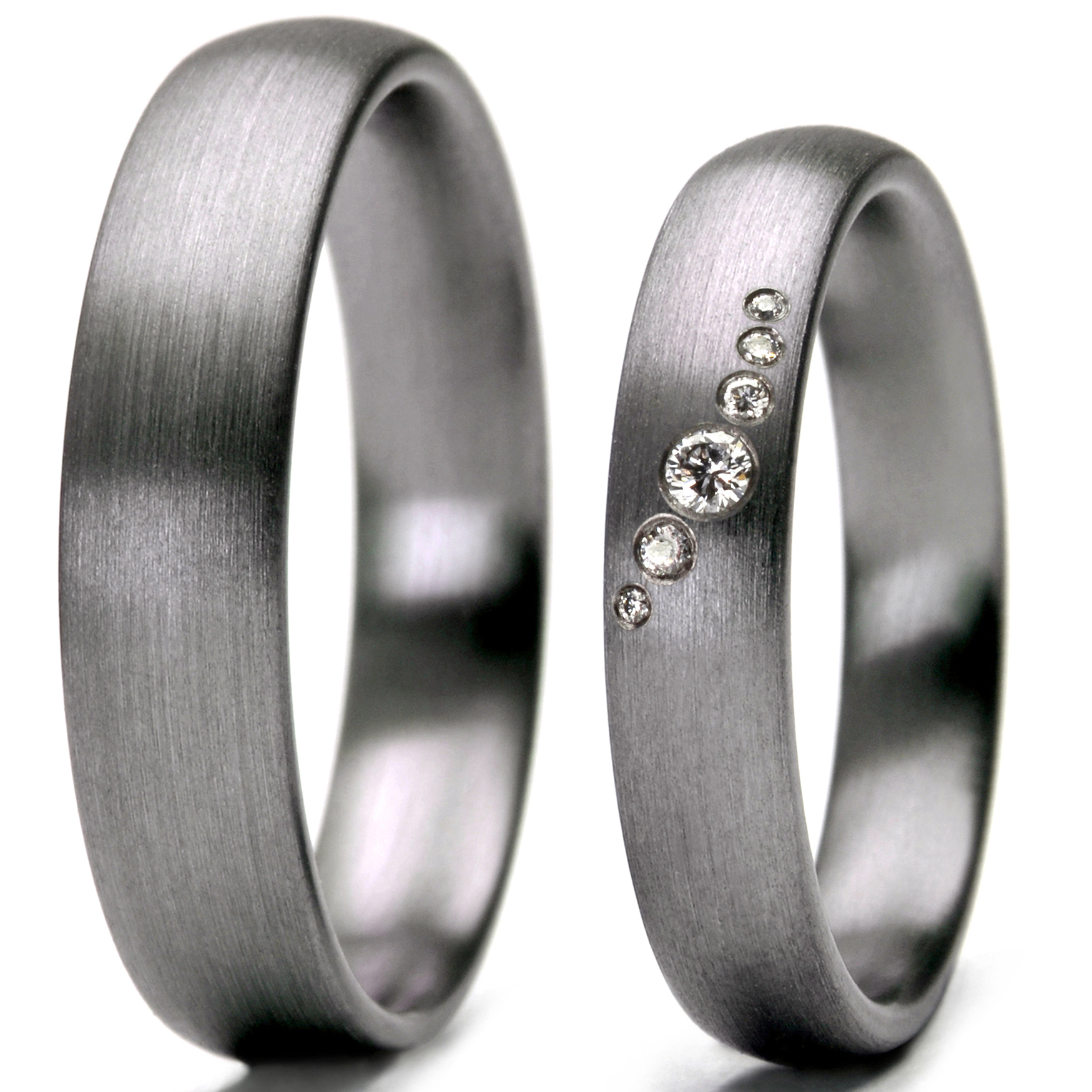 - strichmatte, mattierte oder sandmatte Tantal Trauringe mit Brillanten