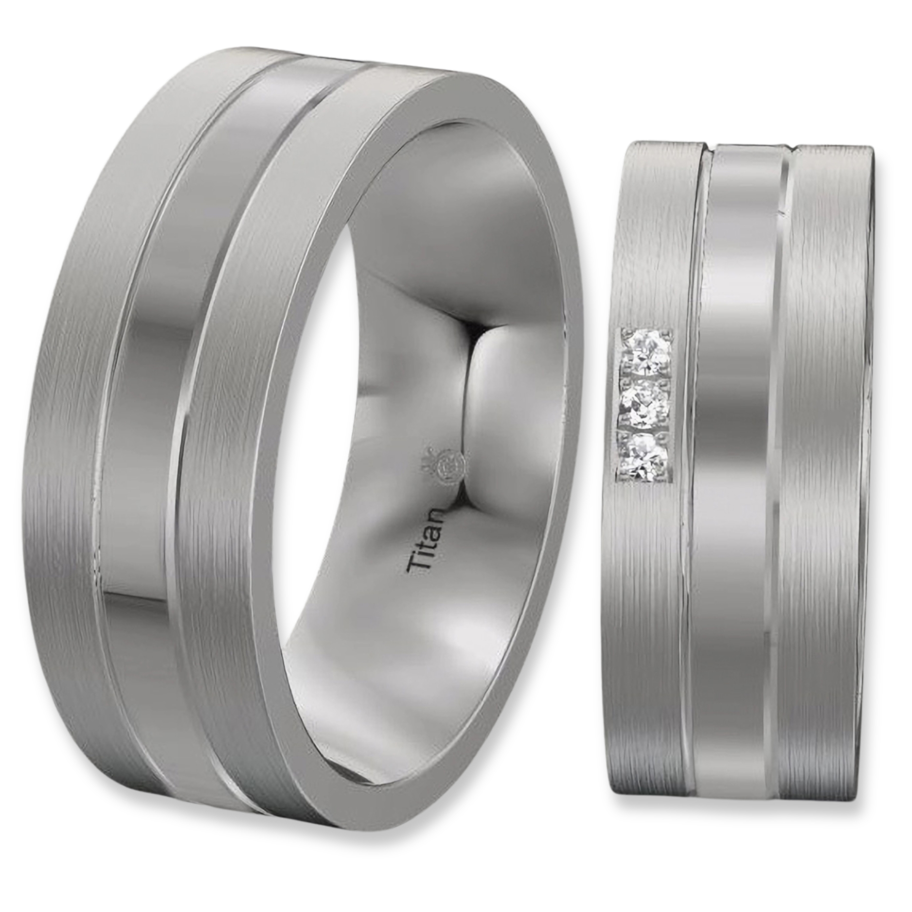 Alles auf einen Blick, 8mm Titan Trauringe mit Brillant