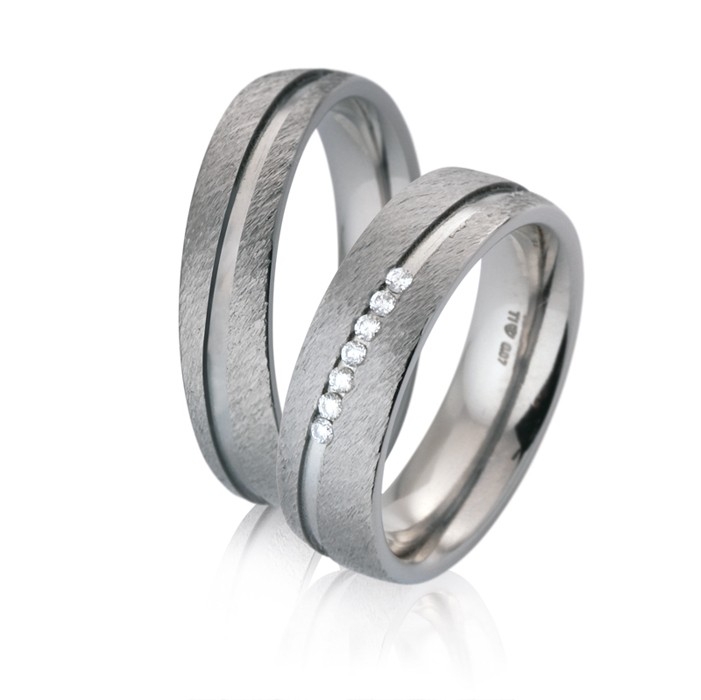Liebe Braut, lieber Bräutigam, diese einzigartigen Brillant Trauringe aus Titan der Qualitätsmarke TitanFactory vereinen ein zeitloses Design, eine klare Formensprache und krönende Besonderheit! Durch die grobmatte Ringoberfläche, die mit der Saturnfuge eine rundum dynamische Optik erhält, kann man sich an diesen Traumringen kaum satt sehen. Gut so, denn entsprechend wird auch niemand Ihre Liebe in Form des Traurings übersehen können! Ganz unter dem TitanFactory Marken-Leitsatz der Kontinuität und Beständigkeit, dürfen Sie sich mit diesen Titanringen über Schmuckstücke der Ewigkeit freuen. Titanium ist leicht, kratzfest, gilt als antiallergisch und ist vor allem extrem unempfindlich gegenüber äußerer Einflüsse. In der Kombination mit gleich 7 weiß strahlenden Brillanten, erreichen diese brillanten Eheringe eine ausdrucksstarke Vollendung.