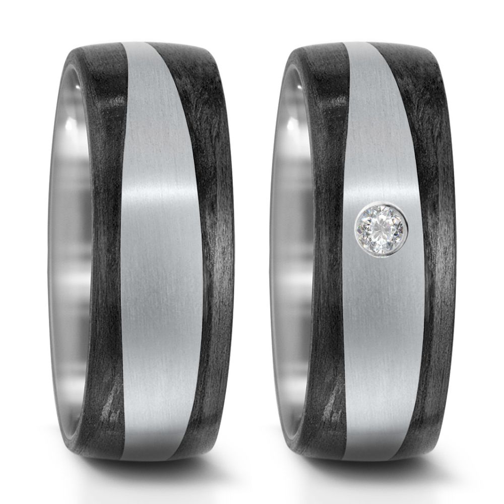Brillant Trauringe aus Carbon mit Titan kaufen