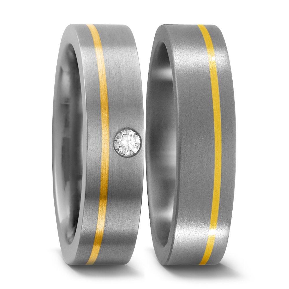 Jetzt Ihre Traum Trauringe aus Gelbgold 750 und Titan mit Brillant kaufen und zum Kauf eine individuelle Wunsch-Innengravur geschenkt bekommen!