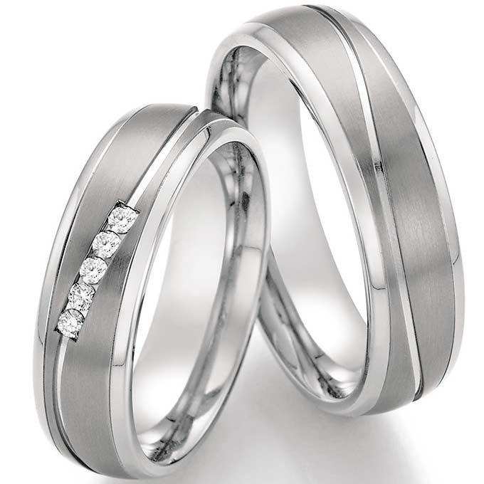 Mit der Avantgarde Kollektion aus dem Hause Brüder Nowotny wird der Trend, Trauringe aus Titan zu tragen, fortgesetzt, verbessert und neu interpretiert. Denn hier wird qualitativ und stylisch auf höchstem Niveau gearbeitet und brillant in Szene gesetzt und das in der von Titan gewohnten Robustheit und Langlebigkeit. Das macht auch diese Ringe mit fein geschwungener Wellennut und fünf funkelnden Brillanten zu Ihrem idealen Trauringpärchen.