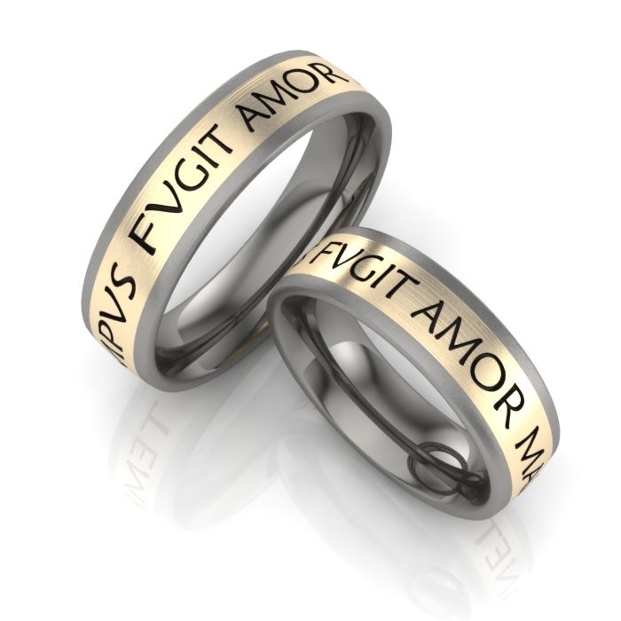 Klassische Farbkombination in modernen Materialien: Eheringe aus Titan mit Gold und Lasergravuren