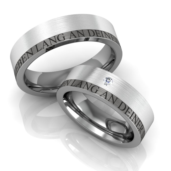 Titan empfiehlt sich besonders, wenn es auf geringes Gewicht bei solider Festigkeit ankommt. Sterling Silber schmückt bei einem reinen Silbergehalt von 92,5%. Dabei besitzt das kostbare Edelmetall das höchste Lichtreflexions-Vermögen unter den Metallen. Im Ergebnis entstehen ästhetisch, edle Bicolor Trauringe, welche sich durch eine individuelle Lasergravur besonders emotional geben und verziert mit Daten, Schriften oder andersartigen Motiv-Ideen zum stillen Geschichtenerzähler Ihrer Verbundenheit werden.