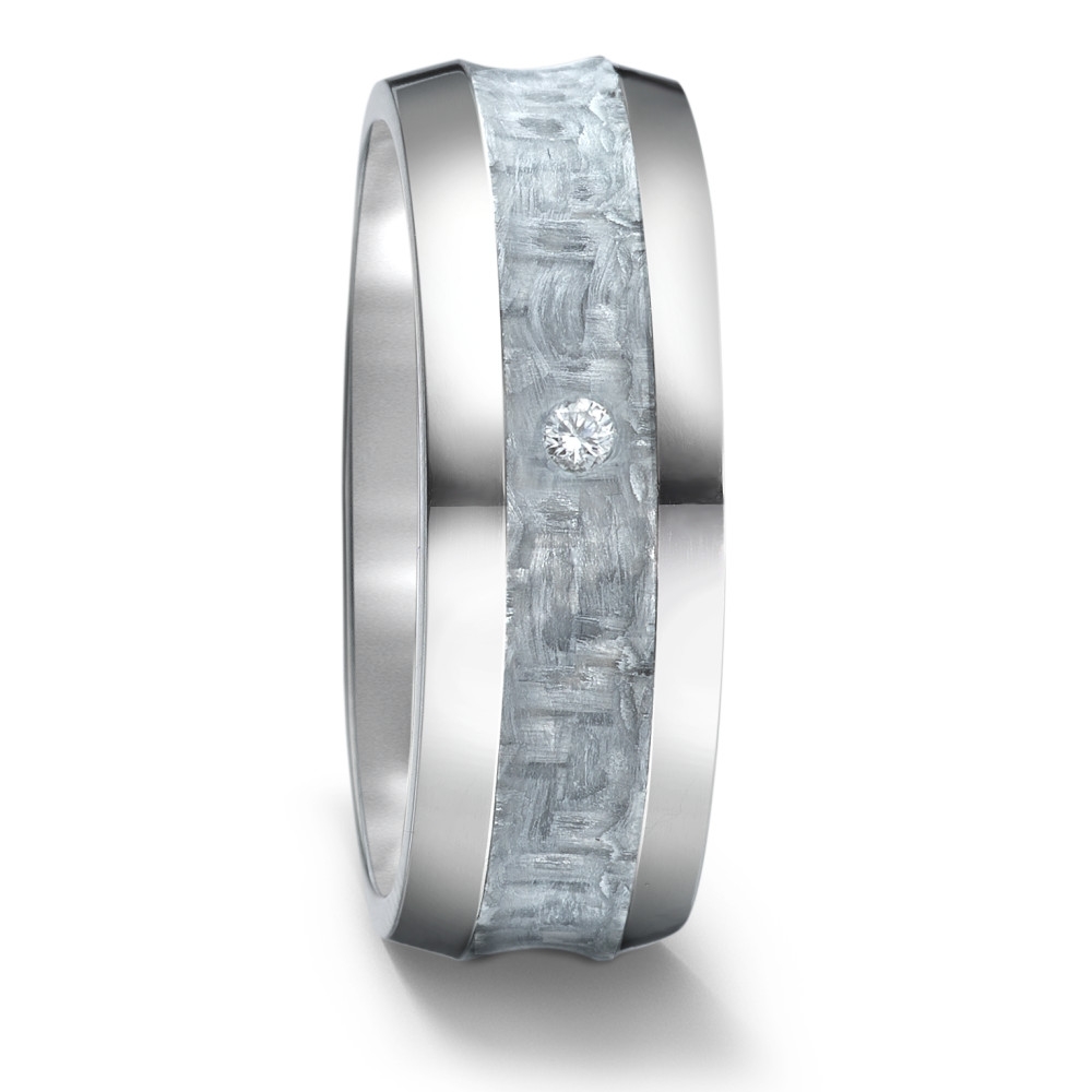 Antragsring aus Carbon grau mit Diamant von TitanFactory inkl. Gravur – handgefertigte Verlobungsringe mit Unikats-Struktur für sie & ihn: Diese Ringe zur Verlobung sind aus einem Material zum Verlieben gefertigt! Das Hightech-Material Karbon ergibt immer Unikats-Strukturen, es ist federleicht und gleichzeit unfassbar stark! Kaum ein anderes Material für Verlobungsringe besitzt diese perfekten Eigenschaften, denn ein Carbonring ist nahezu unverwüstlich und für die Ewigkeit geschaffen! Dabei geben sich Carbonringe bei der Berührung ganz zart und samtig und die matte Oberfläche bleibt dauerhaft erhalten. Auch hier unterscheidet sich der kohlenstoffverstärkte Kunststoff von seinen Mitbuhlern, den (Edel-) Metallen Titan, Palladium oder Silber und Gold. Mit TitanFactory entscheiden Sie sich für einen Meister seines Gebiets, der mit dem grauen Karbon mal wieder allen einen Schritt voraus ist, denn eigentlich ist dieses Material schwarz. Umrandet von starkem Titan wird der optische Genuss komplett und auch Titan begeistert durch seine Anlaufbeständigkeit und Festigkeit. So ist mit diesen Ringen die anhaltende Qualität garantiert und Sie mit diesen brandneuen Ringen zum Antrag den meisten einen Schritt voraus!