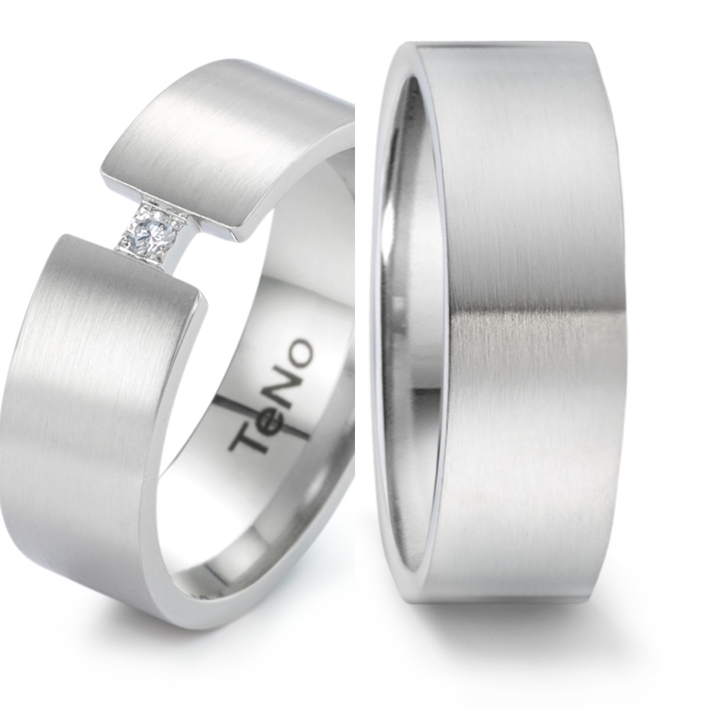 - fein satinierte TeNo Verlobungsringe aus Edelstahl mit Brillant für die Traumfrau